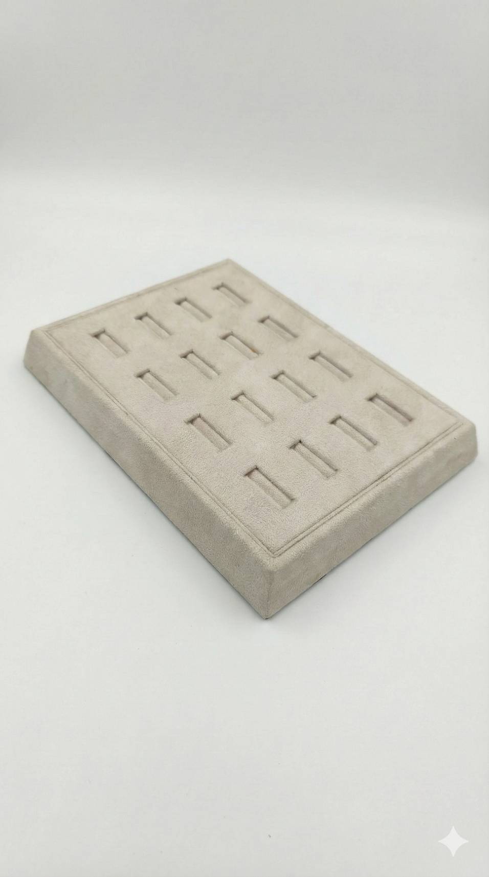 Experience the seamless elegance of our CQ 2015 Series. These 20×15 cm trays feature a fully wrapped suedine finish with sophisticated beveled edges, offering a borderless, modern look for showcasing rings, earrings, and pendants.