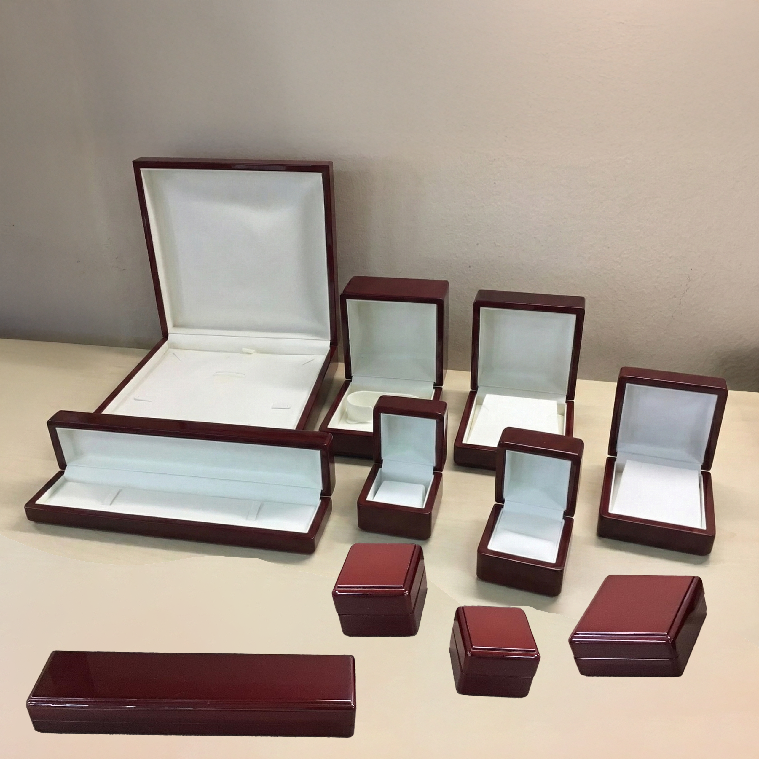 4JU 1 Series – Elegant Maroon Lacquer Wooden Jewelry Gift Boxes